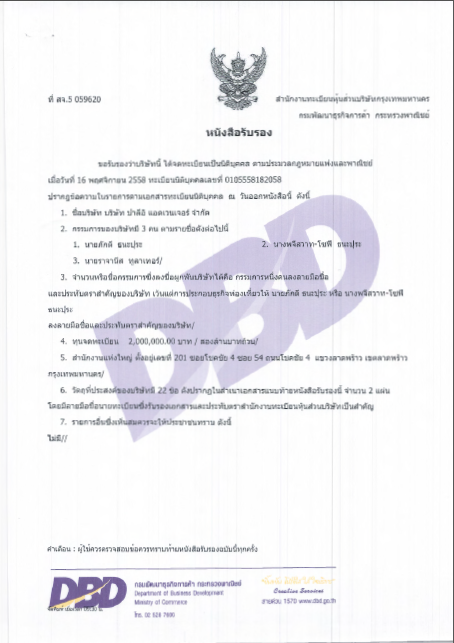 ชื่อภาษาไทย :               บริษัท ปาลีอิ แอดเวนเจอร์ จำกัด