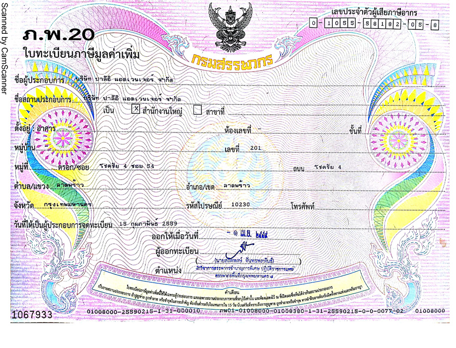 ที่อยู่ตามใบจดทะเบียน :     201 โชคชัย 4 ซอย 54 ถนนโชคชัย 4